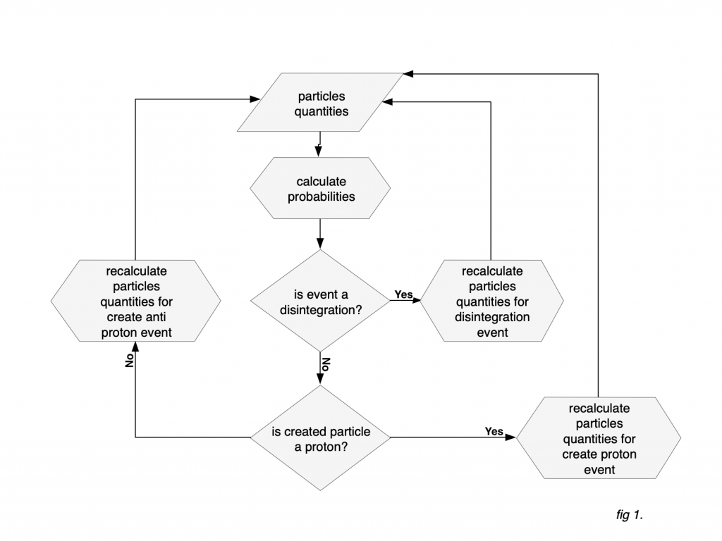 In case it’s a creation event its again randomly chosen with a fixed probability of 50% if the event is an arise of a proton or anti-proton.